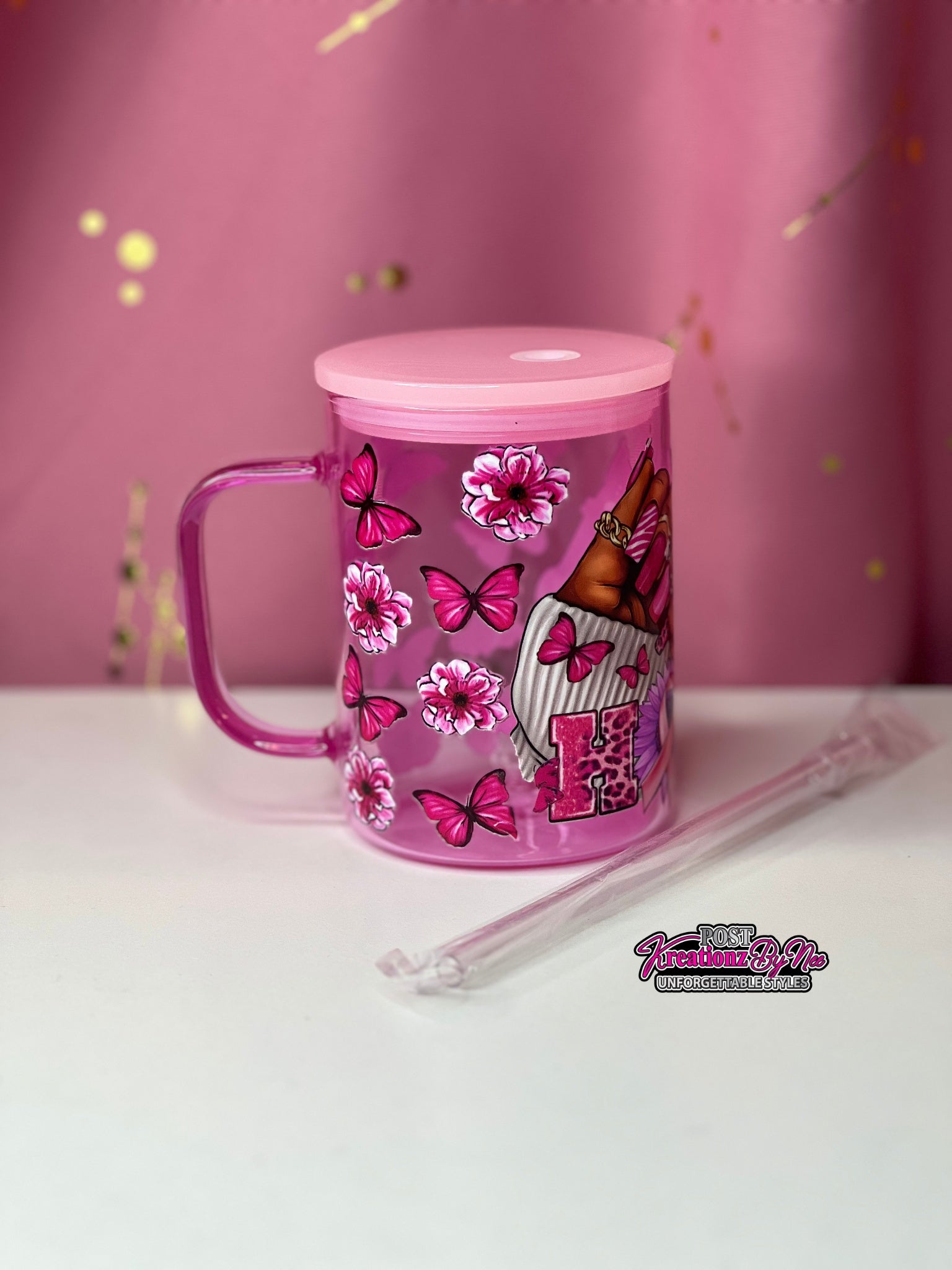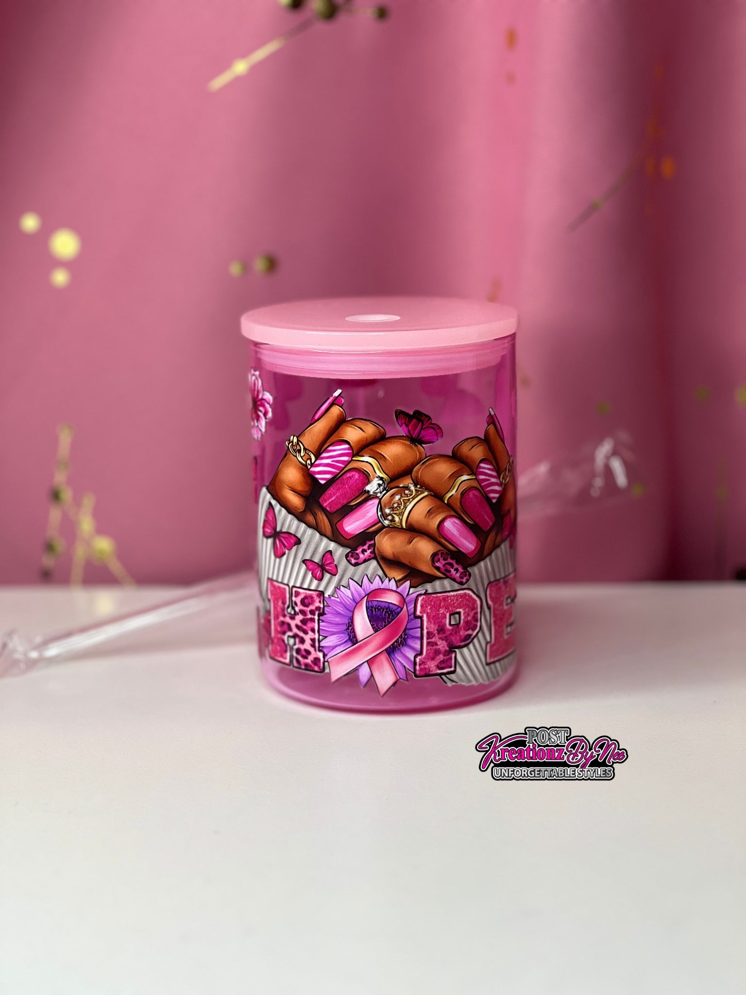 Check out our custom "Pink Hope" 17 oz jelly glass mug! They're perfect for enjoying your favorite drinks or making a thoughtful gift.